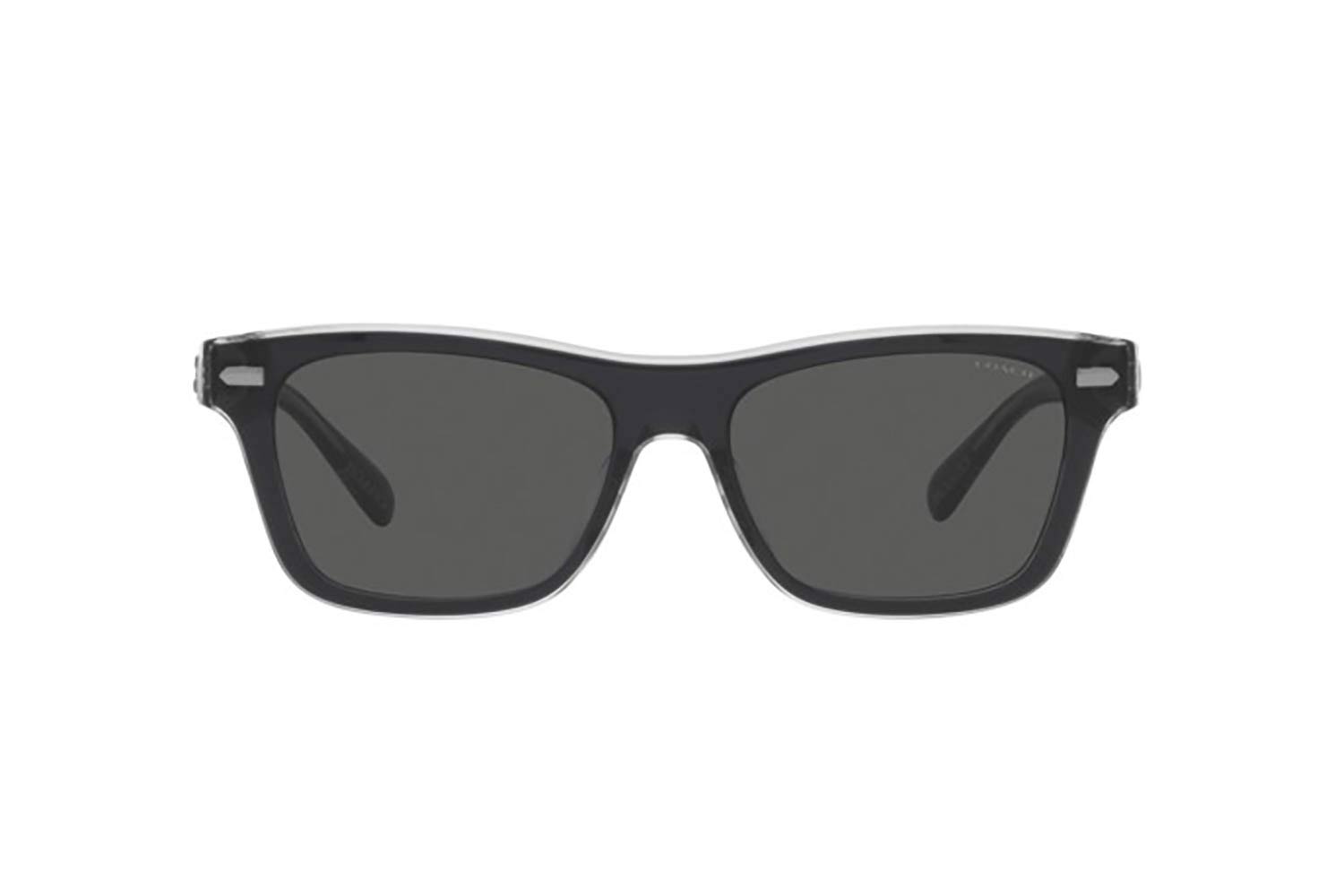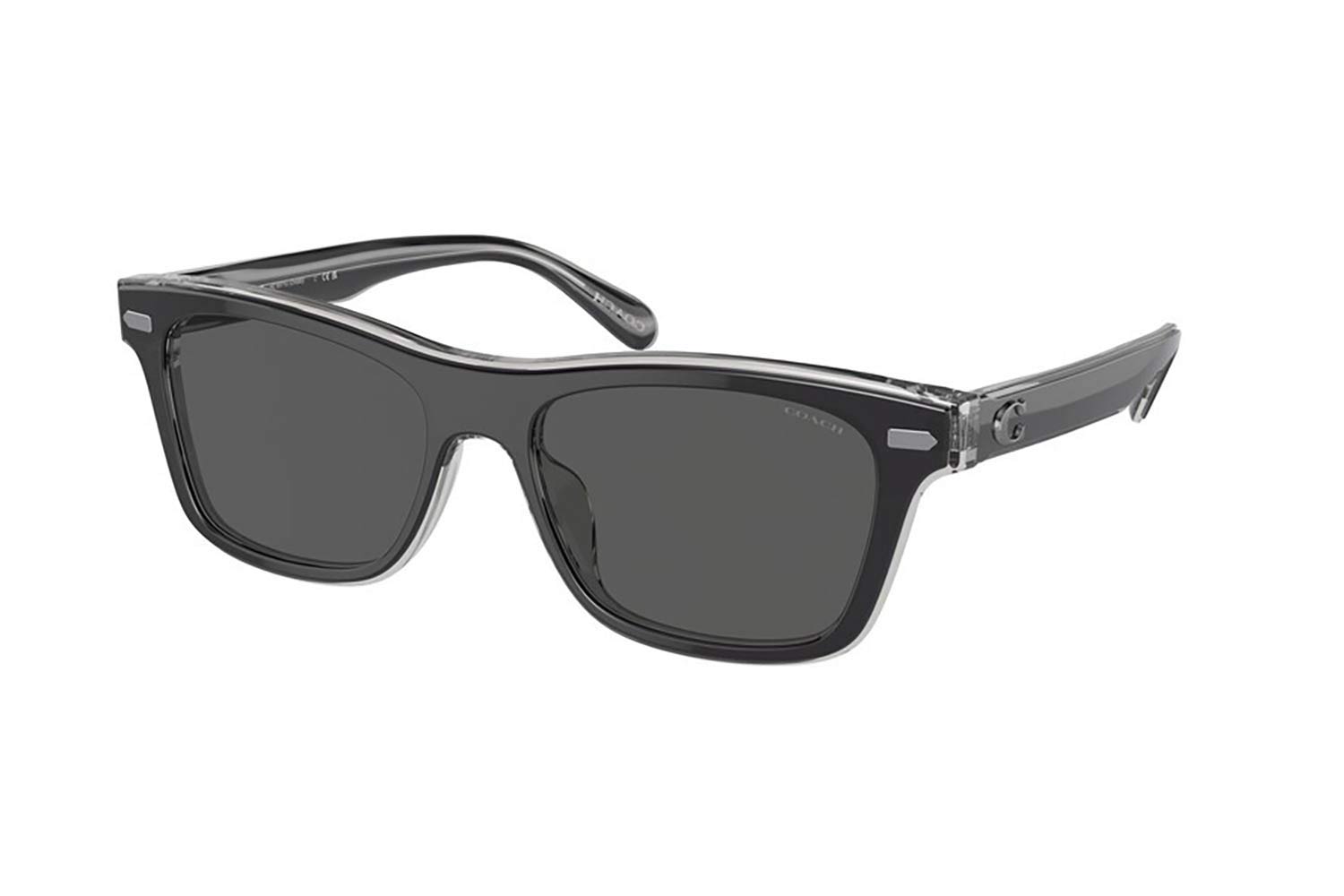 Sono gli Occhiali da sole COACH 8371U-CH583 574587, Uomo, di stile, con forma di Rettangolare. Si tratta di occhiali da sole con montattura fatta da materiale Acetato di colore Black Black/Transparent Grey Aste: Acetate.