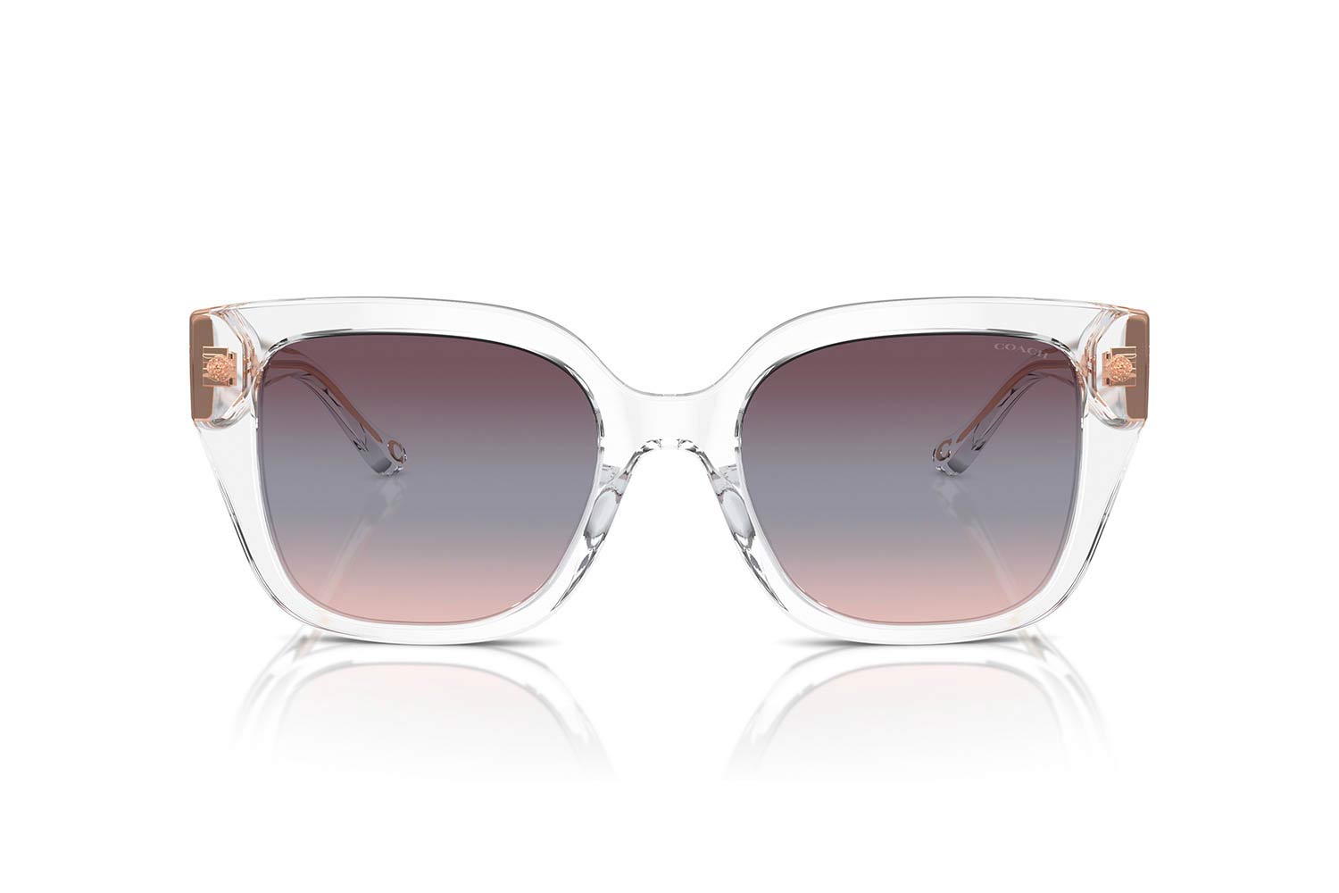 Le lenti degli Occhiali da sole COACH 8392U-CR611 sono Purple Blue Pink Gradient Polyamide Base 4 è 100% prottetivi dai raggi UV del sole.