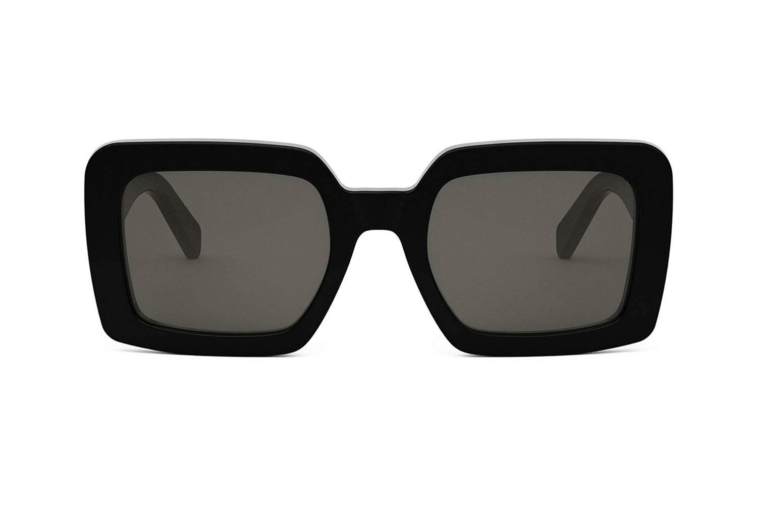 Rettangolare. Si tratta di occhiali da sole con montattura fatta da materiale Acetato di colore Nero.