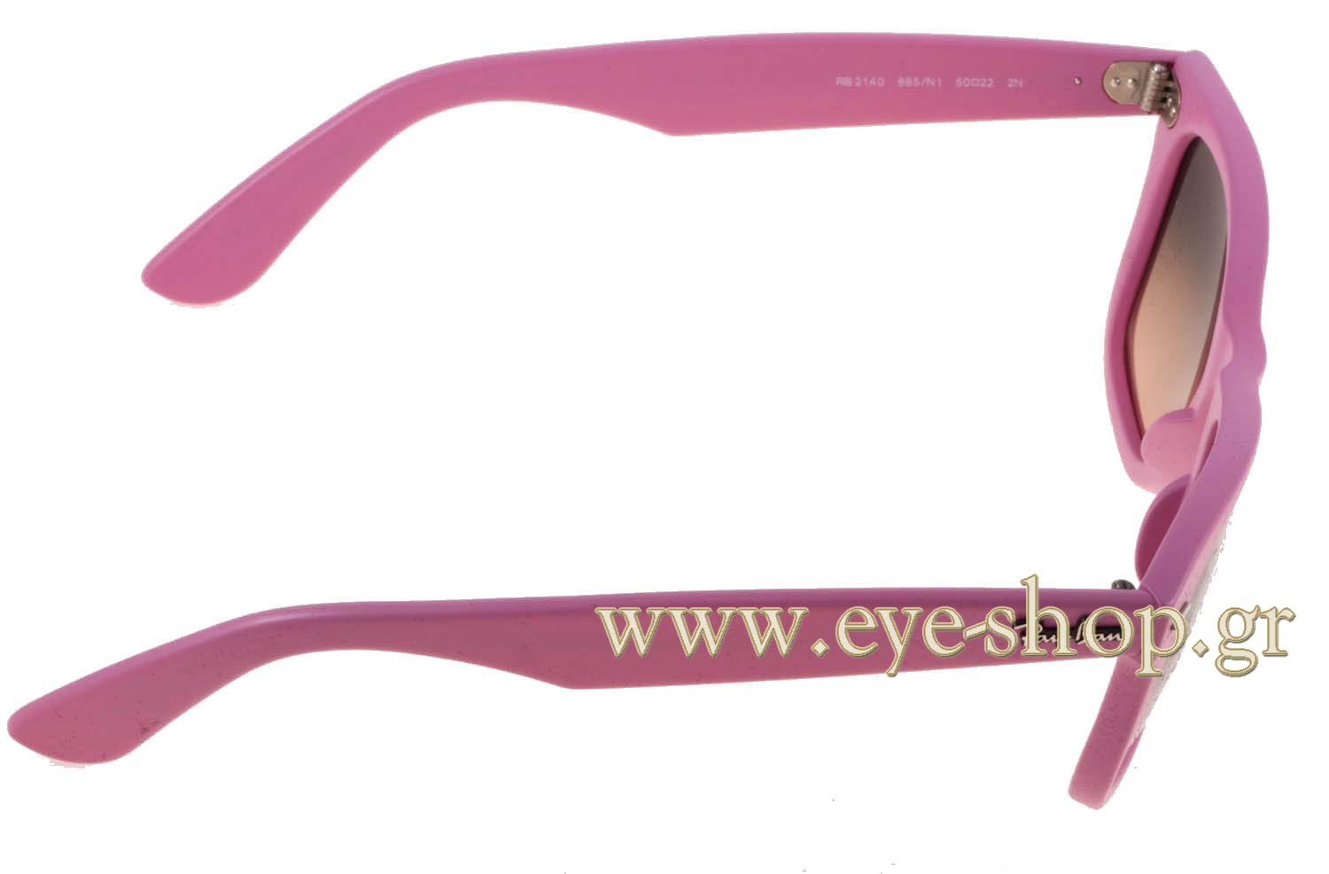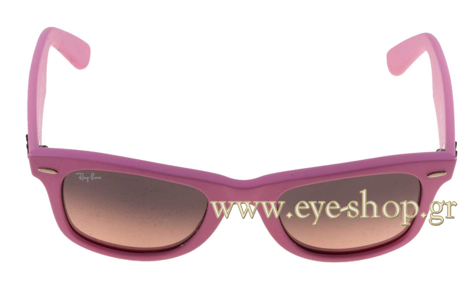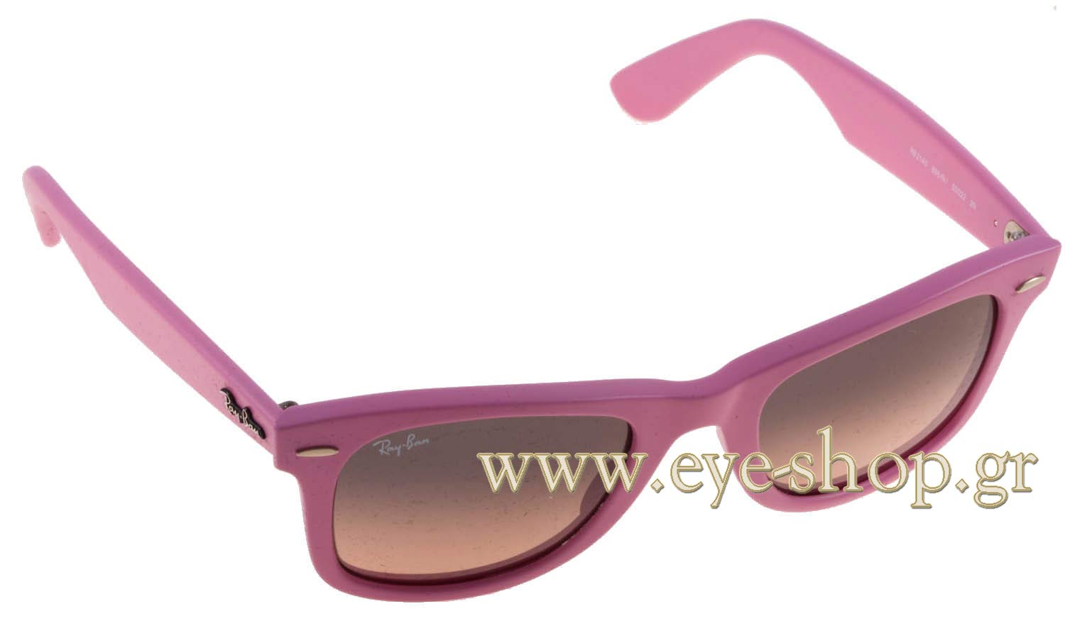 Wayfarer. Si tratta di occhiali da sole con montattura fatta da materiale plastica di colore rosa.