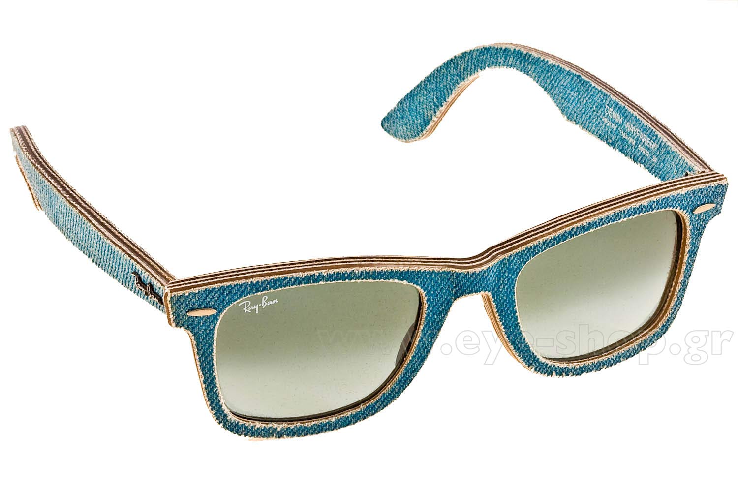 Wayfarer , colore light blu jeans denim  Legno , con lenti blu sfumato vetro  vetro