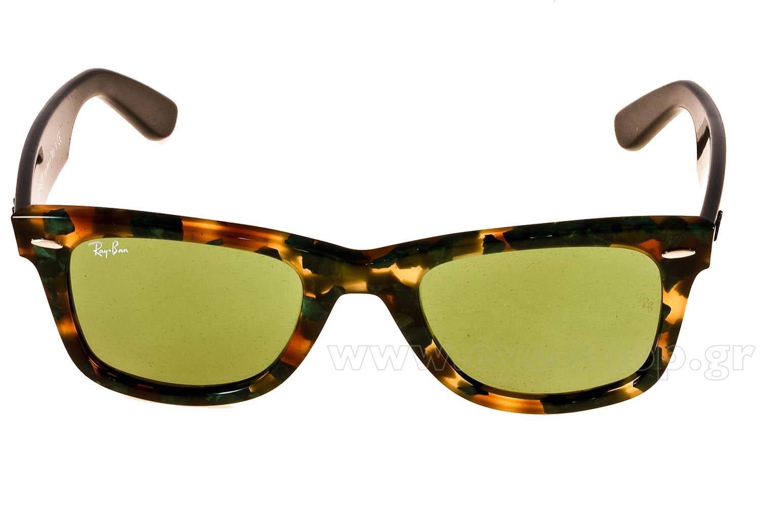 Wayfarer. Si tratta di occhiali da sole con montattura fatta da materiale plastica di colore verde havana nero aste.