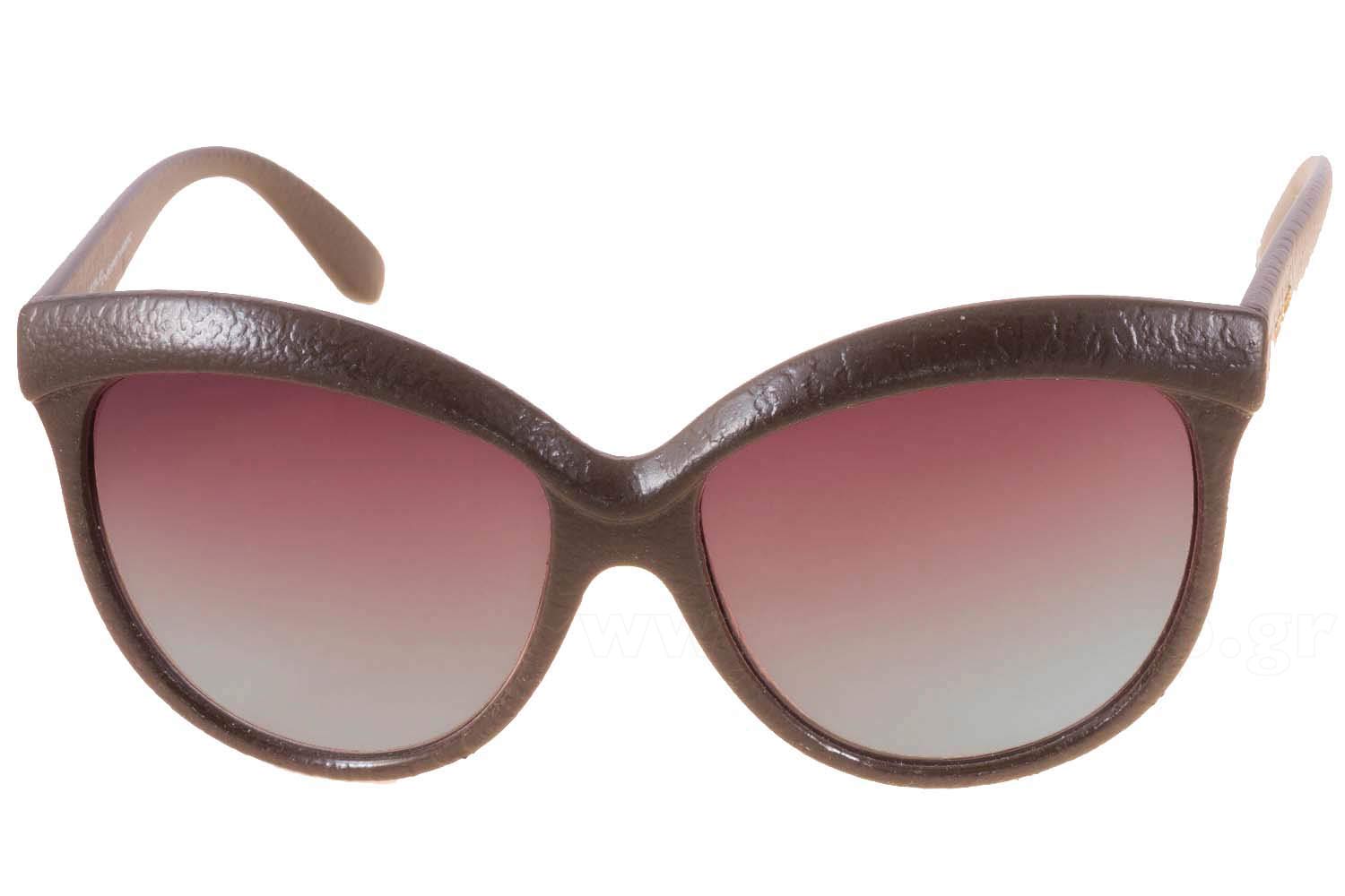 Farfalla. Si tratta di occhiali da sole con montattura fatta da materiale plastica di colore marrone Leather Effect.