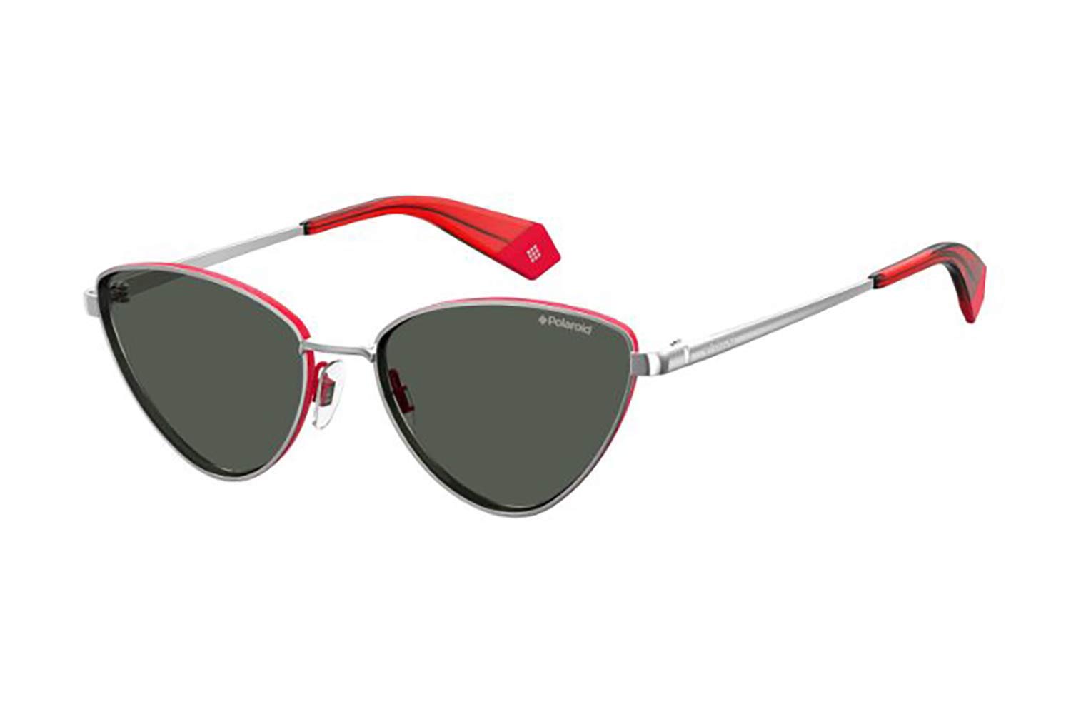 Polaroid PLD 6071SX J2B M9 56 Montatura di metallo argento rosso, lenti grigio polarizzato, Donna, montatura piena