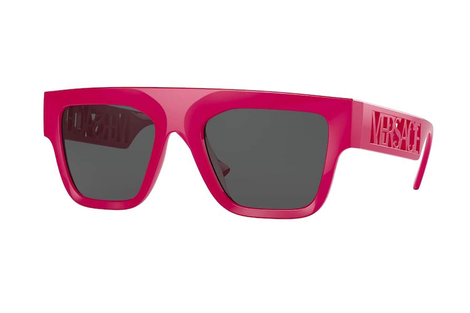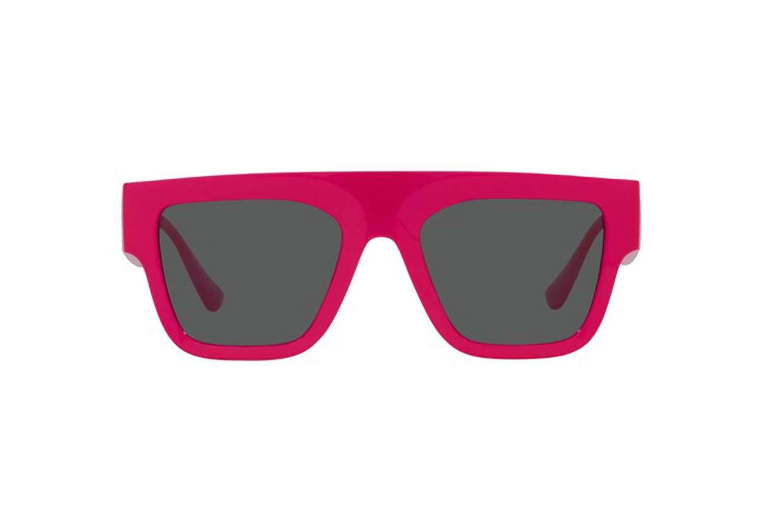 Rettangolare. Si tratta di occhiali da sole con montattura fatta da materiale propionato di colore pink FUXIA.